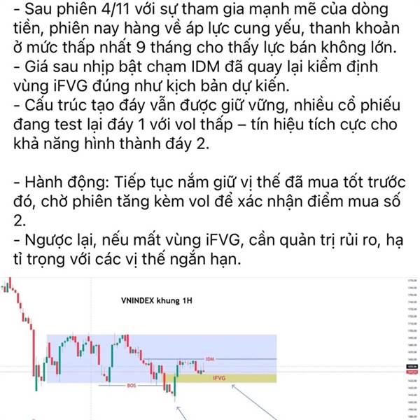 - Sau phiên 4/11 với sự tham gia mạnh mẽ của dòng tiền, phiên nay hàng về áp lực cung yếu, thanh khoản ở mức thấp nhất 9 tháng cho thấy lực bán không lớn. - Giá sau nhịp bật c...Thêm