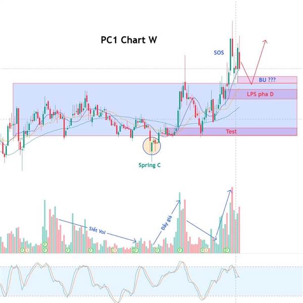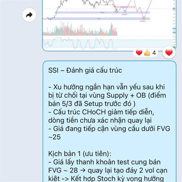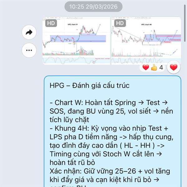 - Chart D: Xu hướng vẫn Markup sau SOS, dòng tiền duy trì tốt. Giá đang quay lại Test Supply Zone 29.5-30 → áp lực chốt lời ngắn hạn, chưa có dấu hiệu phân phối rõ. - Cấu trúc: Vol...Thêm