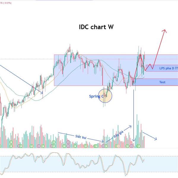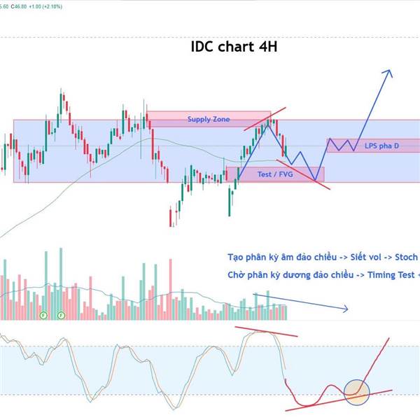 Xu hướng chính chart W: - Sau Spring → vào pha D, vol siết → Kỳ vọng vận động LPS pha D kiểm định cung để vào SOS - Ngắn hạn chart 4H: Sau khi chạm Supply Zone -> giá có xu hướng...Thêm