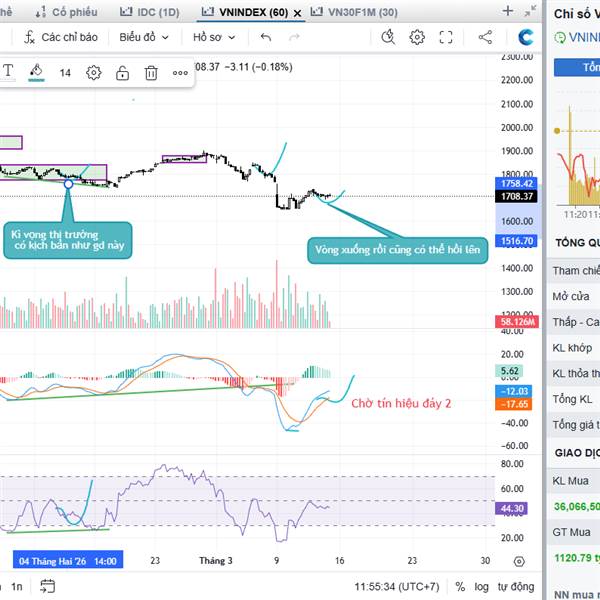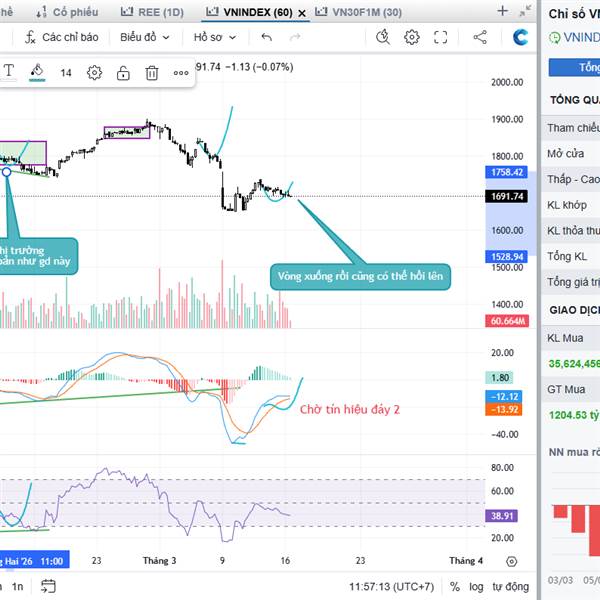 Thị trường kể câu chuyện gì PHIÊN SÁNG 13/3 TEST LẠI HỖ TRỢ 1690-1710+- - NHIỀU CỔ KHỎE LỘ DIỆN – TẬP TRUNG CỔ PHIẾU