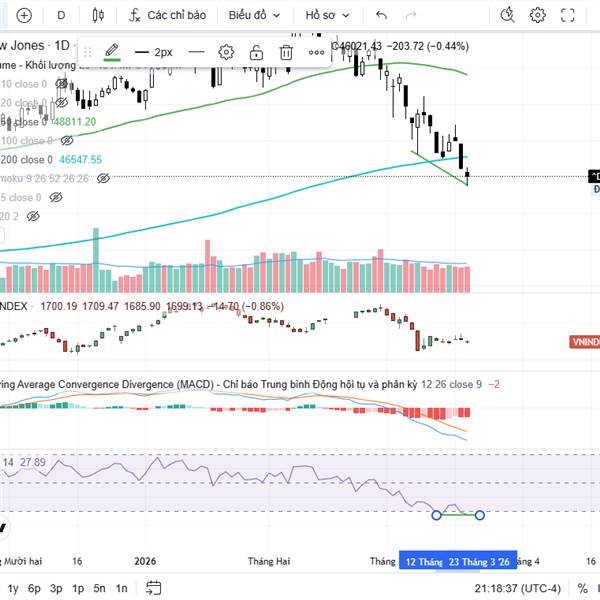 Đối với chỉ số trung bình công nghiệp DJ, đã có nhịp giảm mạnh, đang phản ứng quanh vùng MA200 khung D, quanh đây nếu TT năng lượng hạ nhiệt khi đó DJ có thể hồi phục tạo đáy ngắn hạn quanh MA200 sau ...Thêm