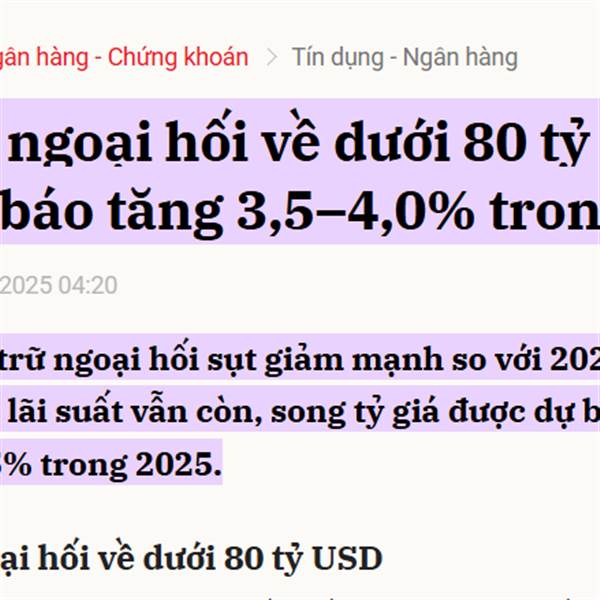 Con số dự trữ ngoại hối theo tôi bắt buộc phải chạm đáy vì việt nam cần rất nhiều usd cho giai đoạn tới. chúng ta không thể để tiền đồng trượt giá và niềm tin về vnd xuống thấp như những năm vừa qua. ...Thêm