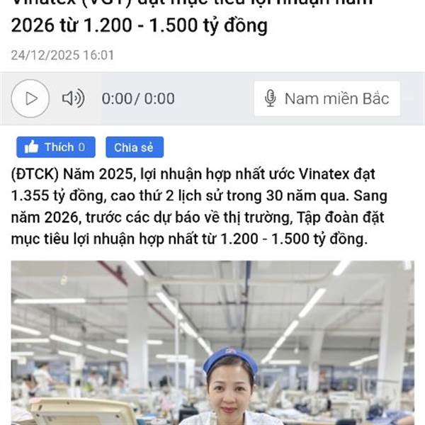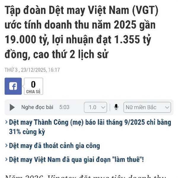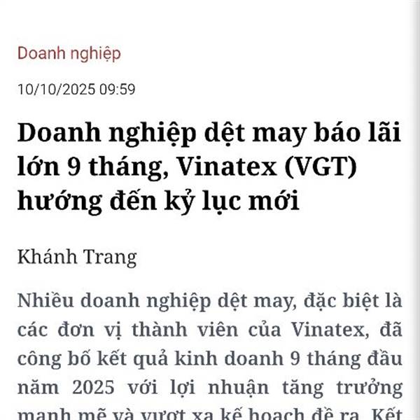Với lợi nhuận vượt đỉnh lịch sử thì VGT sẽ hướng về giá. 20-22 tùy thị trường dòng tiền đầu cơ. Nếu mua hãy mua sớm chứ đừng để 17-18 media hô hào lại lao vào. Đằng sau là 3 triệu lao động ngành dệt m...Thêm
