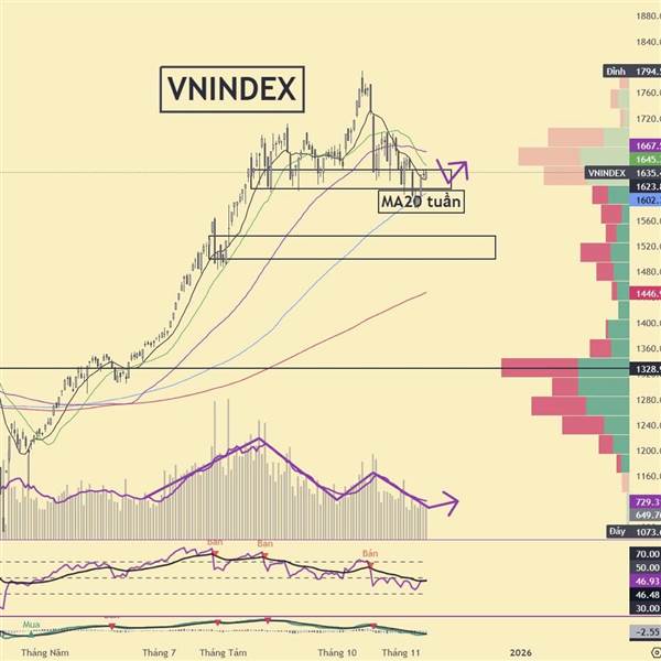 Về Ma20 tuần 1600 và áp lực điều chỉnh từ Trụ triệt tiêu ngắn hạn
