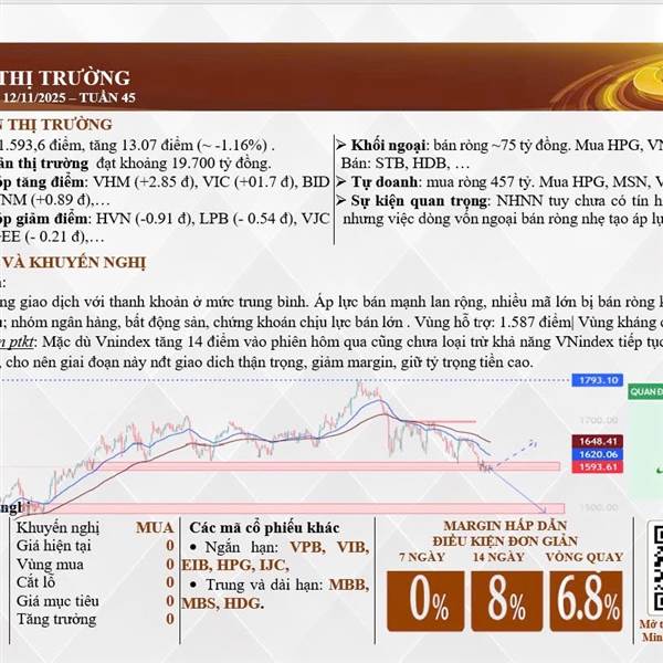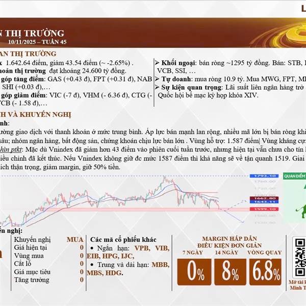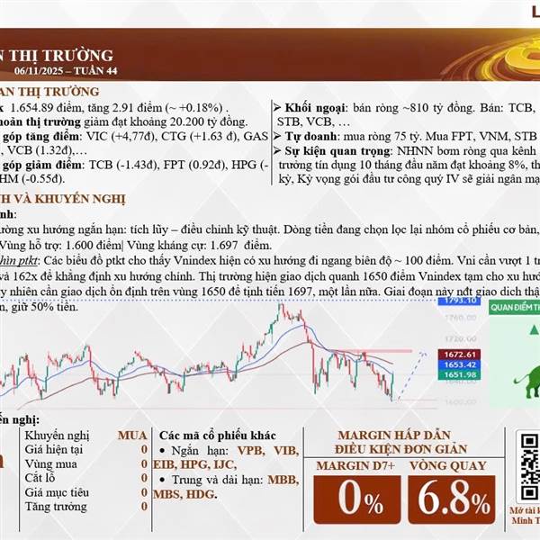 em gửi anh chị bản tin buổi sáng trước phiên 9/10. Xu hướng ngắn hạn vẫn tăng. Về dài hạn thì thị trường cần vượt và giao dịch ổn định trên 1711 để thoát khỏi vùng đi ngang biên độ 100 điểm. Chúc anh ...Thêm