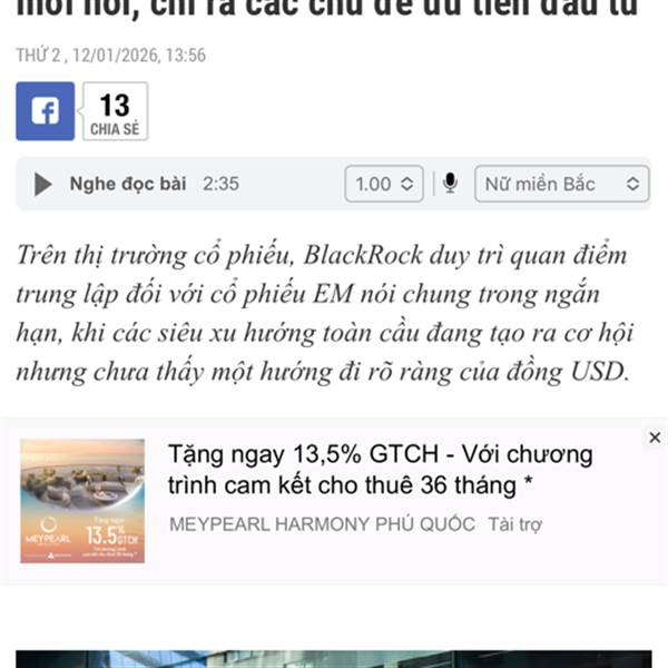 Morning pé pow, gã khổng lồ đã để ý đến ck vn, nếu blackrock hành động thì nhóm hạ tầng & năng lượng sẽ là nhóm được quan tâm nhất, bởi quỹ chục ngàn tỉ U này không thể đánh bé được , khẩu vị của họ ...Thêm