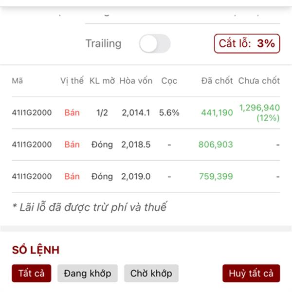 Vô lệnh xong tắt app làm k chốt dc giá cao. Chốt atc mà còn lố hợp đồng