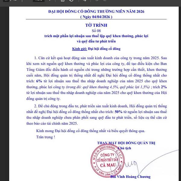Thay vì trả cổ đông công ty đẩy vào quỹ đầu tư phát triển 50% để dùng đầu tư kho...Thêm