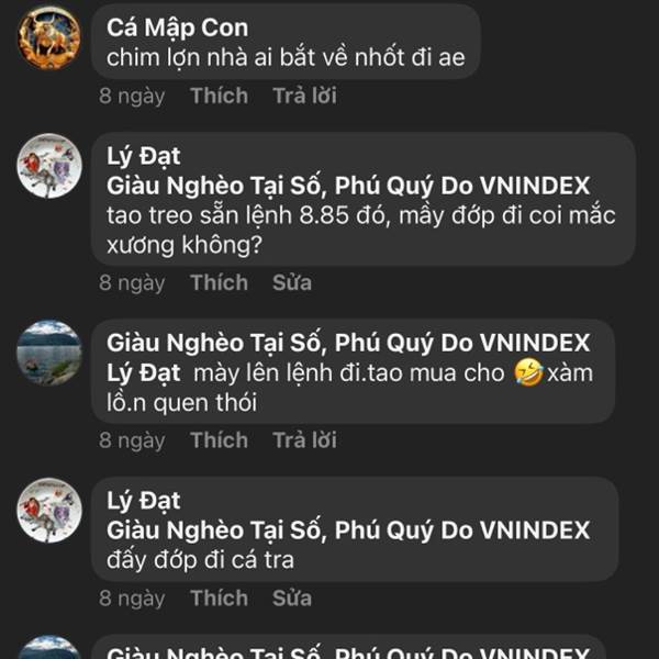 Các bác nghĩ dễ ăn với anh Th à, mom men gom hàng anh thì anh đạp cho cắt lỗ