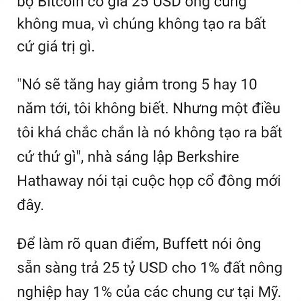 Nhà đầu tư thiên tài Warren Buffett đã từng nói btc giá 25 usd ông cũng không mua