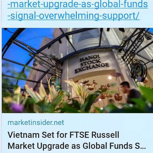 Rumor: Theo nguồn tin riêng từ một thành viên cấp cao trong tổ chức FTSE Russell, Việt Nam sẽ chính thức được nâng hạng lên thị trường mới nổi hạng 2 (Secondary Emerging Market) ngay trong tháng 10/20...