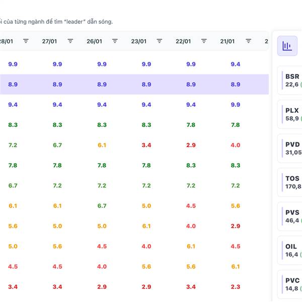Xếp hạng ngành ngày 28/01/2026. Cổ phiếu Top pick.