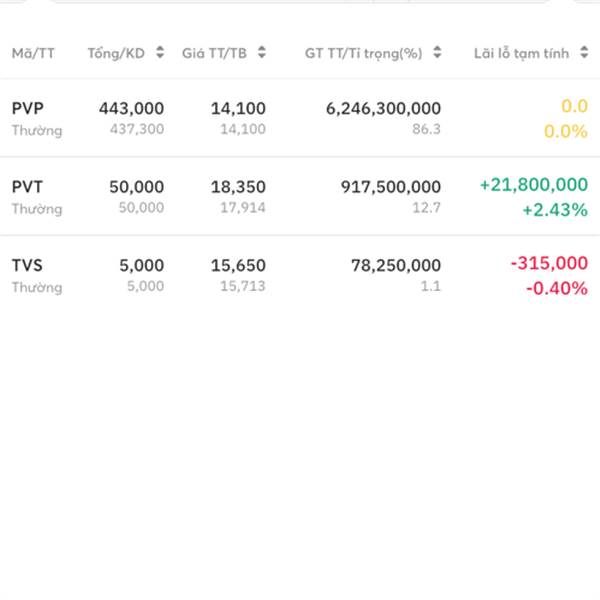 Nói thật giá này mà bán PVT đi thì nên nghỉ mẹ chứng khoán đi. Không biết đọc báo cáo tài chính à . Mua cầm thoả mái ko giảm mạnh dc để là chắc chắn có ăn . Cứ mua mua bán bán làm gì ( đỡ đau đầu)