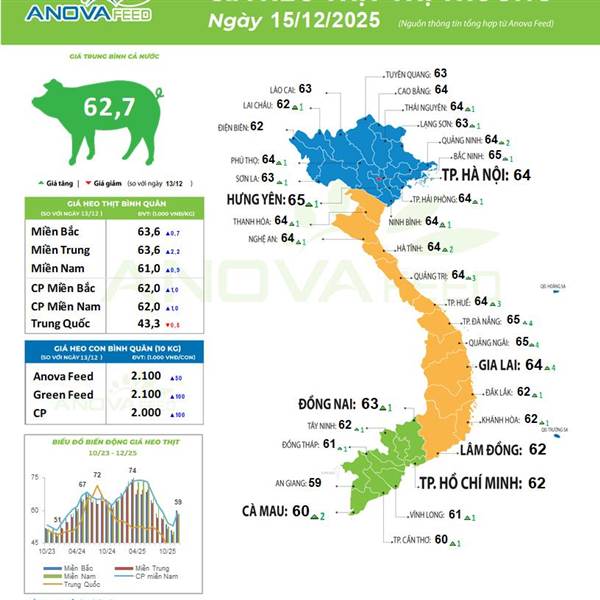 Giá heo hơi hôm nay 12/12/2025: 3 miền tăng mạnh, nâng đỉnh lên 62.000 đồng/kg