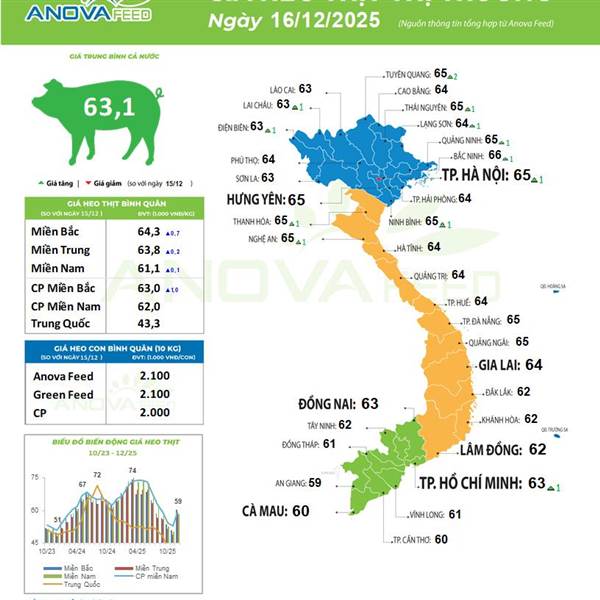 Giá heo hơi hôm nay 16/12: 3 miền tăng mạnh, miền Bắc nâng lên đỉnh 65.000 đồng/kg