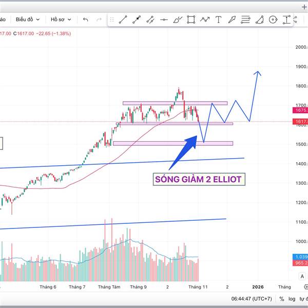 Nhận Định: VỀ HỖ TRỢ 1600 Phiên qua mở đầu với một gap tăng nhờ thông tin tích cực từ thuế quan, nhưng nhanh chóng quay đầu giảm đỏ khi lên vùng cản 1700. Cuối phiên V...Thêm