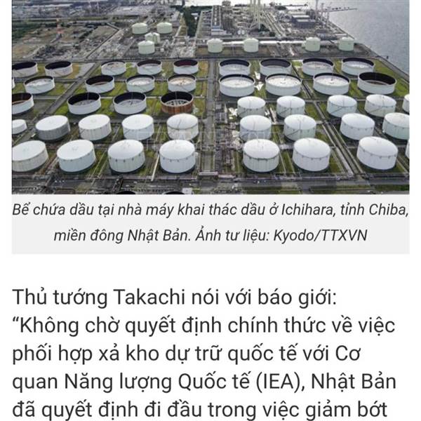 Xả kho có cứu nổi giá dầu... Nhật xả kho dầu Mỹ xã kho dầu dự trữ để ổn định giá dầu.... VN ko nghe xả kho nhỉ😇 Thôi để Vic xả kho xe điện khỏi lo giá dầu🤣