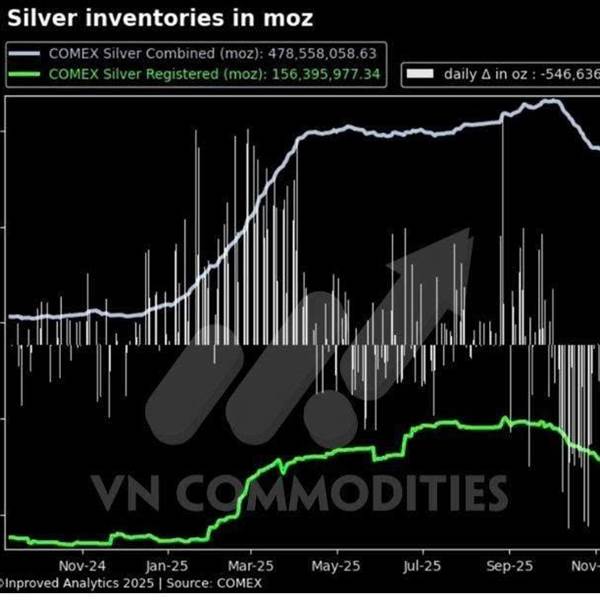 ✔️Tồn kho bạc tại Comex đã giảm xuống mức thấp nhất trong 7,5 tháng, còn 478,5 triệu ounce, nguồn cung vật chất tiếp tục thắt chặt.