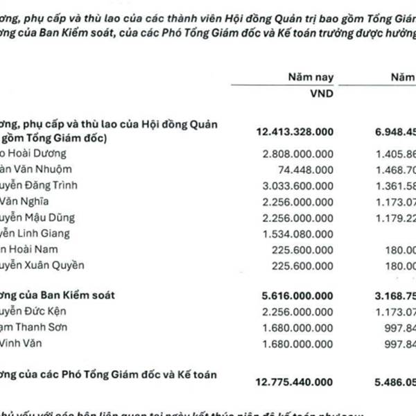 Lương của Tổng giám đốc PVOiL tăng từ 1,361 tỷ 2024 lên 3,033 tỷ năm 2025 là gần gấp đôi 😁. Chi phí tiền lương, phụ cấp, thù lao cho Người Quản lý tại PvoiL tăng hơn 15,2 tỷ so với 2024. Chúc cty năm...Thêm