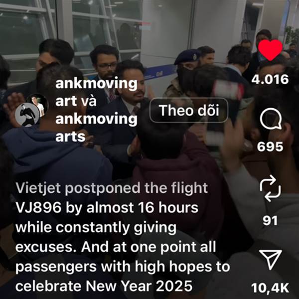 • Chuyến Vietjet VJ896 bị hoãn gần 16 tiếng tại sân bay quốc tế Indira Gandhi (Delhi).