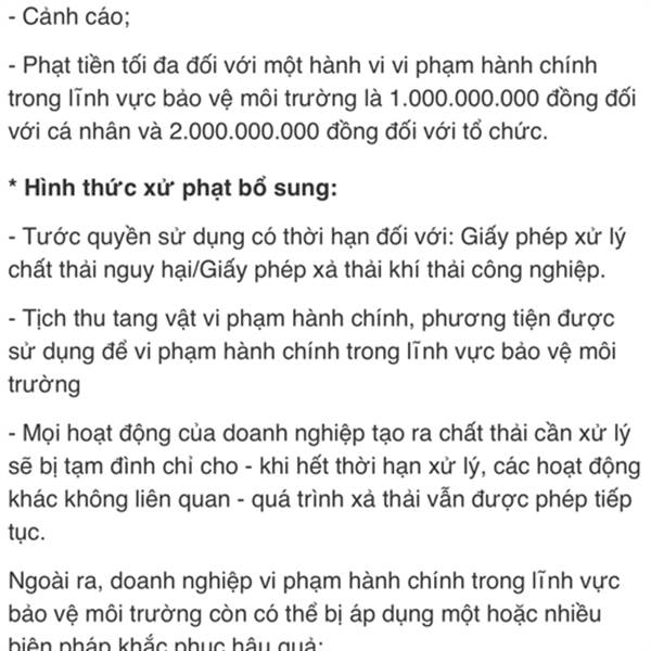 Nhìn hình phạt liên quan môi trường như bên dưới gồm đình chỉ => thì nếu ko gia hạn được giấy phép mà còn phải bồi thường thì giá bao nhiêu cũng là mắc