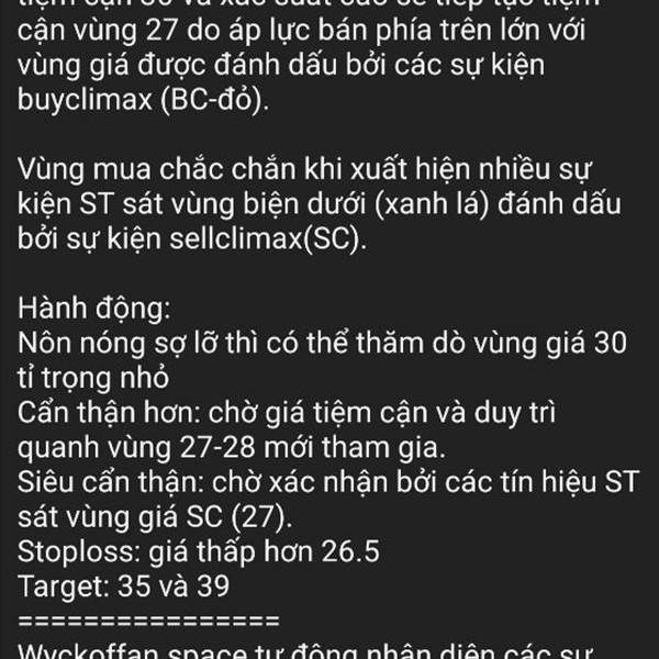 VIC: TRÒ CHƠI TRỐN TÌM ============ Giá đang ở vùng cao nhưng vắng bóng các sự kiện buyclimax(BC-đỏ), phe bán vẫn đang ẩn náu và có thể xổ ra bất cứ khi nào, và lực cầu của bên mua cũng yếu. Sự kiện sell...Thêm