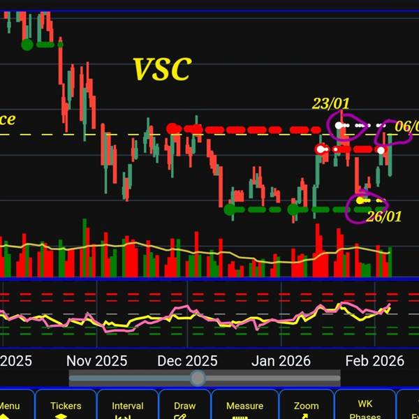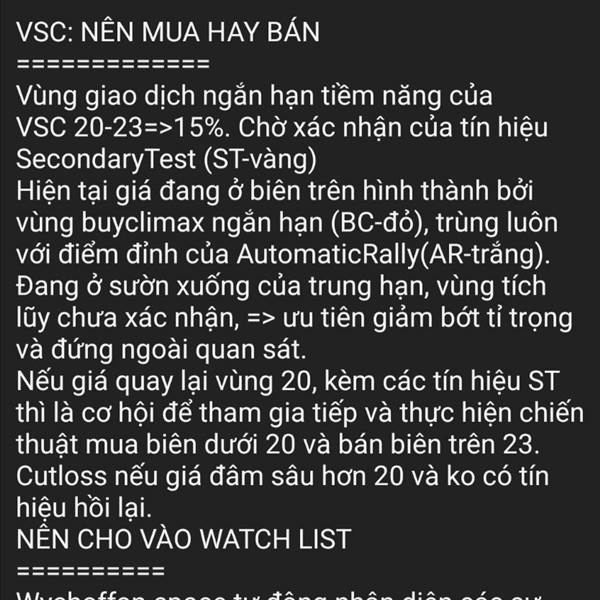 VSC: NÊN MUA HAY BÁN ============= Vùng giao dịch ngắn hạn tiềm năng của VSC 20-23=>15%. Chờ xác nhận của tín hiệu SecondaryTest (ST-vàng) Hiện tại giá đang ở biên trên hình thành bởi vùng buyclimax ngắn...Thêm