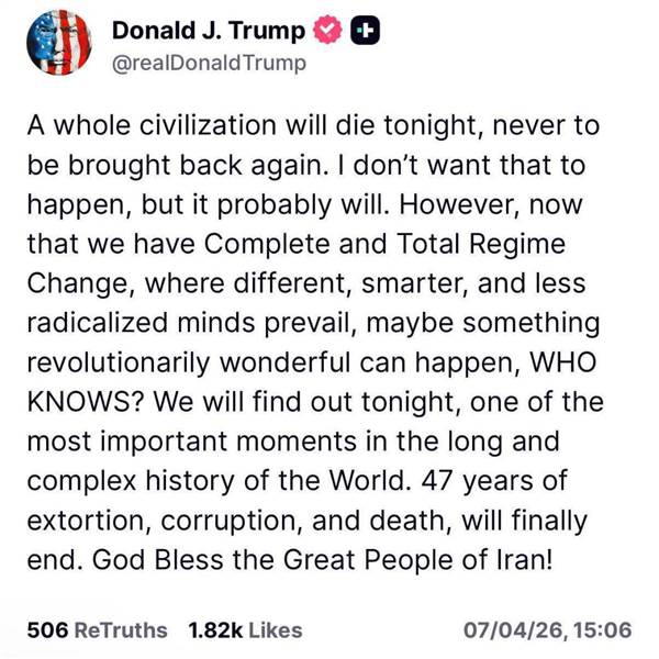 Rất có thể chỉ trong vài giờ nữa hoặc ngay ngày mai cuộc chiến này sẽ đạt đến điểm không thể quay đầu. Và tôi mong không phải như vậy. Nếu Trump ra lệnh tấn công cơ sở hạ tầng dân sự của Iran thì Mỹ đ...Thêm