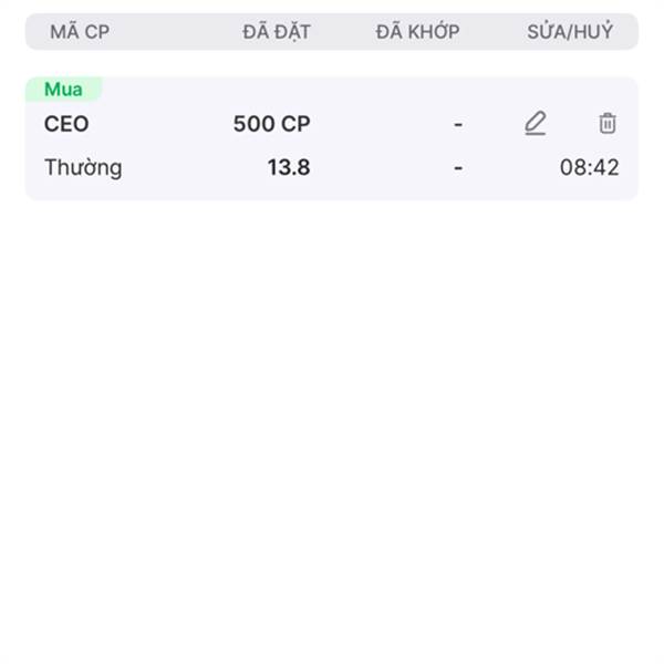 Đặt lệnh mua 13.8 từ 8h42 phút mà vào phiên nó xuống 13.5 mà sao lệnh mình k khớp vậy ae, khó hiểu
