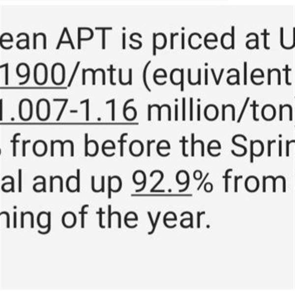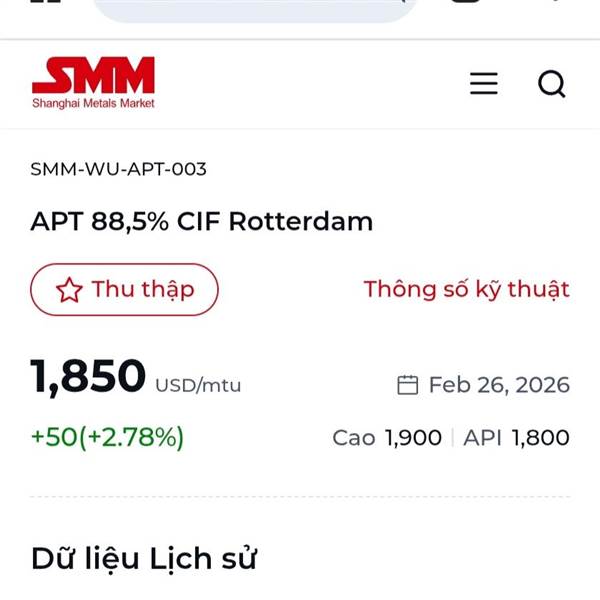 Gấp 3 giá bq 2025 (518$/MTU) và tăng 66% so với quý 4/2025 (900$/MTU).