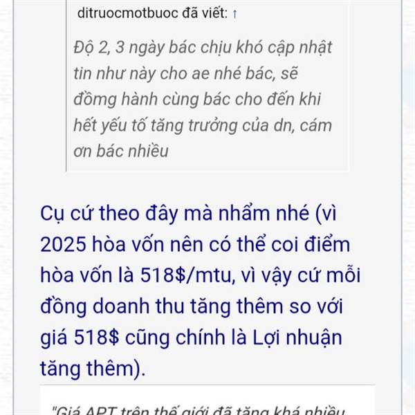 Với giả định sản lượng 2026 giữ nguyên (thực tế có khi cao hơn rất nhiều. Vì 2025 bảo dưỡng mất...Thêm
