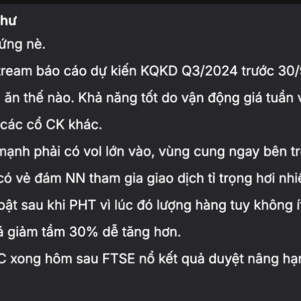- BCTC Q3 (DSC có truyền thống Livestream báo cáo KQKD trước các CTC...Thêm