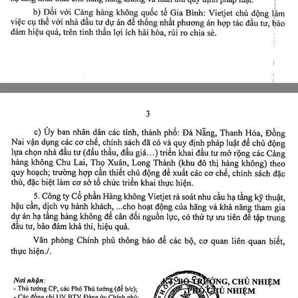 VJC được tham gia vào xây dựng, đầu tư các hạng mục ở 2 siêu sân bay Long Thành và Gia Bình. Chính phủ đồng ý và yêu cầu các team nhảy vào support theo đúng tinh thần nghị quyết 68