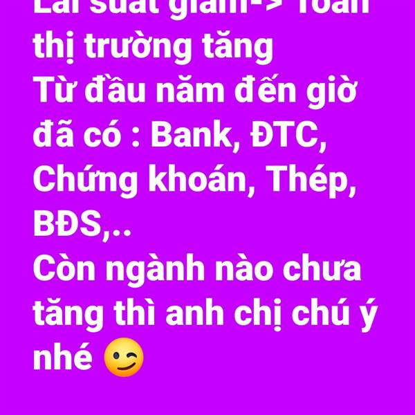 Broker em bảo Cả thị trường đã tăng, Còn ngành nào đang bị đạp sấp mặt để a lái gom, thì cứ gom mạnh theo lái thôi. Nay dự là phân lại thơm rồi :))))