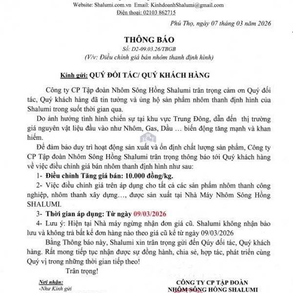 Giá nhôm thế giới tăng mạnh lên 3.369,50 USD/tấn do lo ngại đứt gãy nguồn cung vùng Vịnh