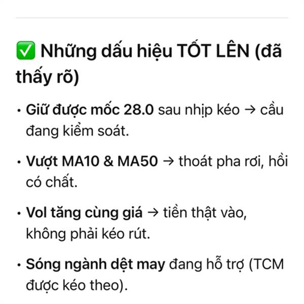 Mua nhiều hơn bán nghành nghề nó xanh két sóng dệt may đang rất mạnh nhưng con Tcm này chủ tịch Tùng nó sống bẩn lắm.8 đời chứng sĩ còn sợ.Đánh 1 năm giảm top 1 .Giá bây giờ rẻ thật bằng hôm khủng hoả...Thêm