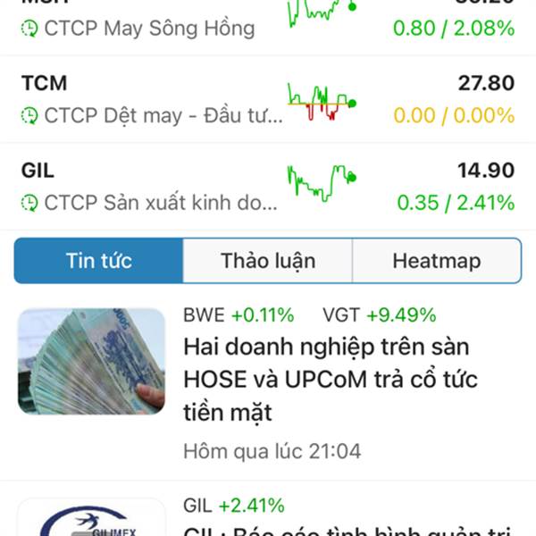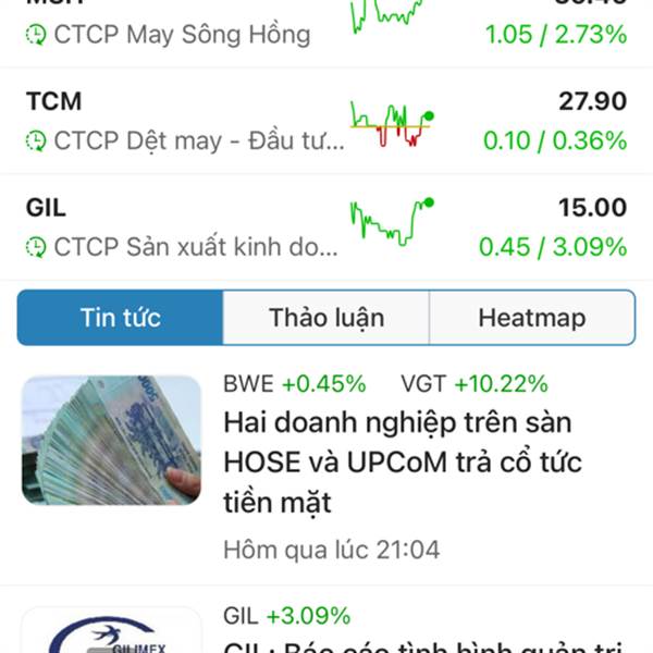 E dệt may này chủ tịch quá có tâm có đức.Còn con Tcm cũng là dệt may hưởng lợi ké như Vgt mà thằng chủ tịch nó thất đức lắm.Nao xanh thì xanh nhẹ.E này gần tím rồi mà con kia chỉ xanh 0,5.Thế mới biết...Thêm
