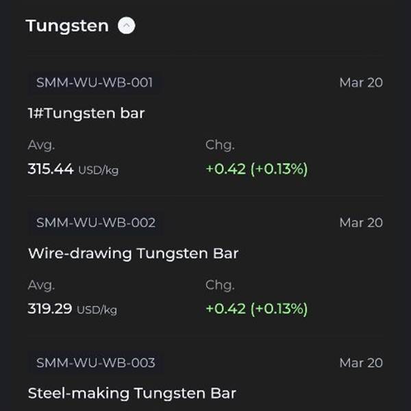 Sau 2 ngày giảm nhẹ (trung bình 0.16%), giá Vonfram ngày 17/03 trên TT Shanghai tăng 0.25%