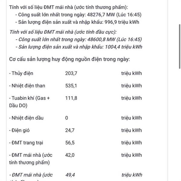 Thông tin từ Công ty TNHH MTV Vận hành hệ thống điện và Thị trường điện quốc gia (NSMO), ngày 31-3, mặc dù thời tiết không nắng nóng như dự báo, hệ thống điện quốc gia ghi nhận sản lượng điện tiêu thụ lần đầu đạt trên 1 tỉ kWh.