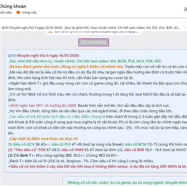 19/01/2026: Chốt lời FOX +32% vị thế T+3; IDC, PLX, PLC tím lịm 😁💵 _Mã cũ lãi nhiều thì mình ko gáy lại, ae xem lại bài đăng cũ. Chơi luôn T+ lãi mới cho xanh chín. ✨ _Phân tích chi tiết trong Room KH...Thêm