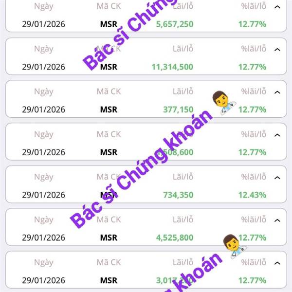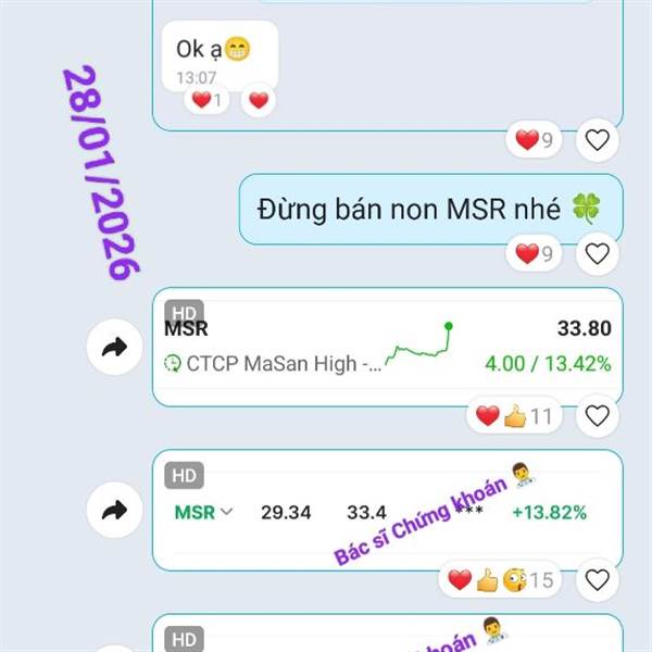 Qua bảo ae siêu cổ MSR rồi, Tím 15% 😁 _Rõ ràng dặn lòng là đừng bán non mà tđn nào nay cấn cấn nghĩ nó còn test lại đỉnh nên tỉa bớt, hớ mà thôi lãi nhìu kệ. Buồn tí nhưng vẫn vui. 😆 _Sữa VNM +5% đủ t...Thêm