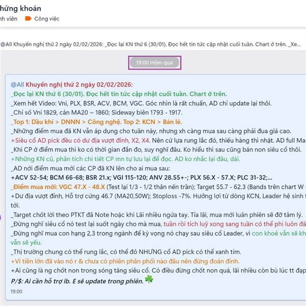 02/02/2026: vẫn xanh tím à 😁 _Dầu PVC, BSR tím, PLX, PLC xanh đẹp. 💵 _DNNN: BCM, VGI làm 4%. MSR, GVR lãi nhiều khỏi gáy lại luôn. 🎁 _DGW tím, VGC 4%, ANV, VNM 2% hơn,... _Còm mỗi ACV là đang lấy đà th...Thêm