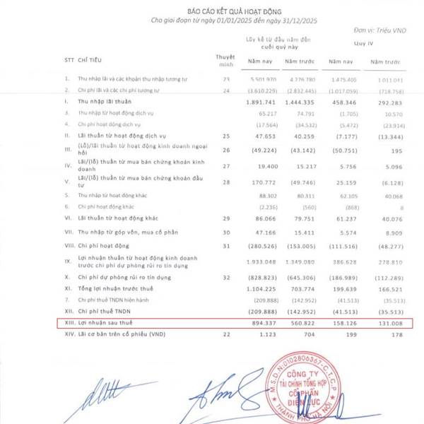 LNST tăng 20%, EPS 4 quý đạt 1.140 đồng (+80% svck...