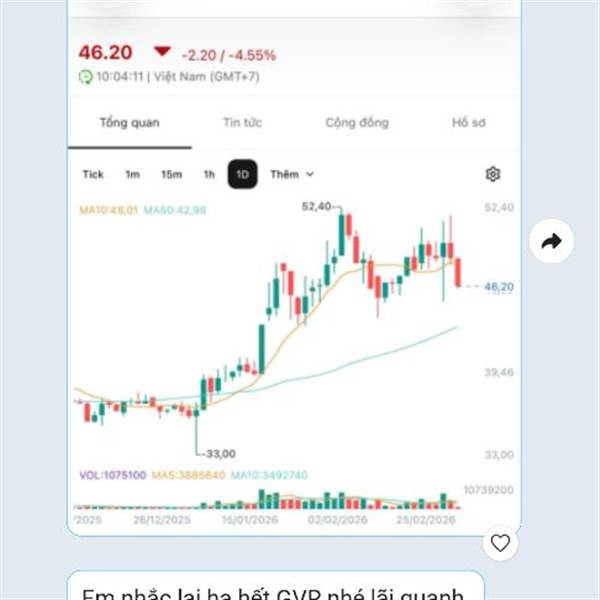 Ae né nhóm trần trí ra nha ae. Hô hào mem mua gvr giá 36 trên đỉnh bán giá 33 đáy. Idc 44 trên đỉnh bán giá 39 dưới đáy, mwg 86 tren đỉnh bán giá 81 dưới đáy ssi 32 trên đỉnh bán giá 28 dưới đáy stb h...