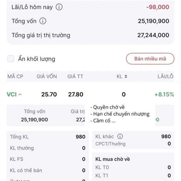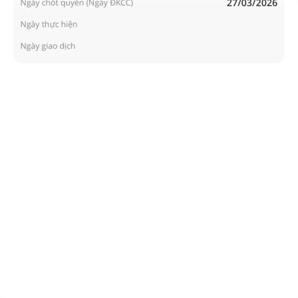 Các bác làm ơn cho em hỏi cổ phiếu thưởng vci tách ngày 27/3/26 hôm nào thì về để giao dịch bán được ạ. Bên vci chả thấy thông báo gì cả ạ. Em cảm ơn các bác