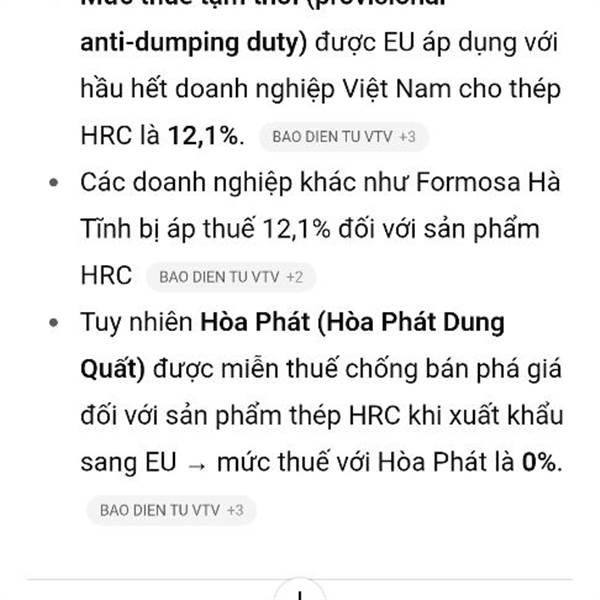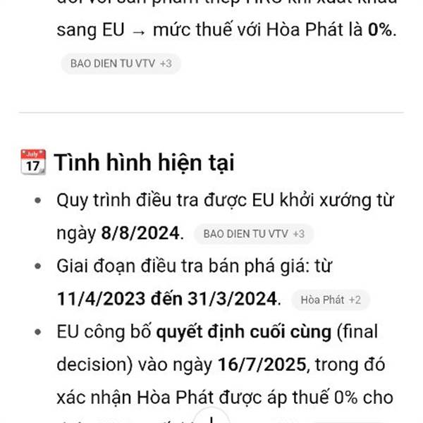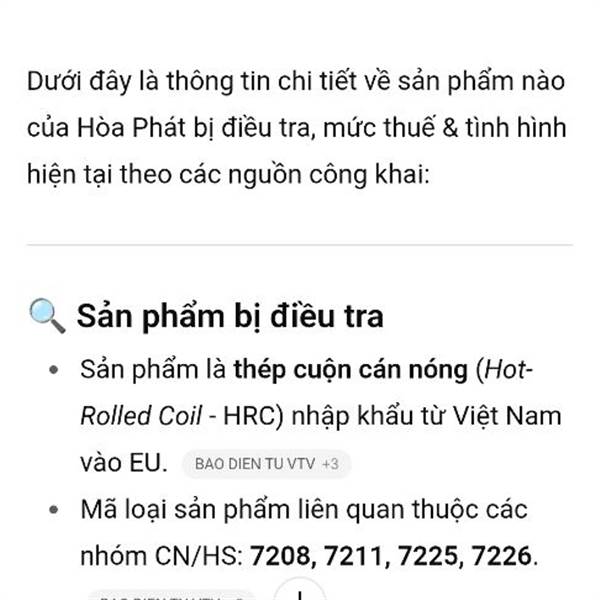 Chat GDp nói gì về tình hình hiện tại của việc EU điều tra chống bán phá giá của thép HRC Hoà Phát