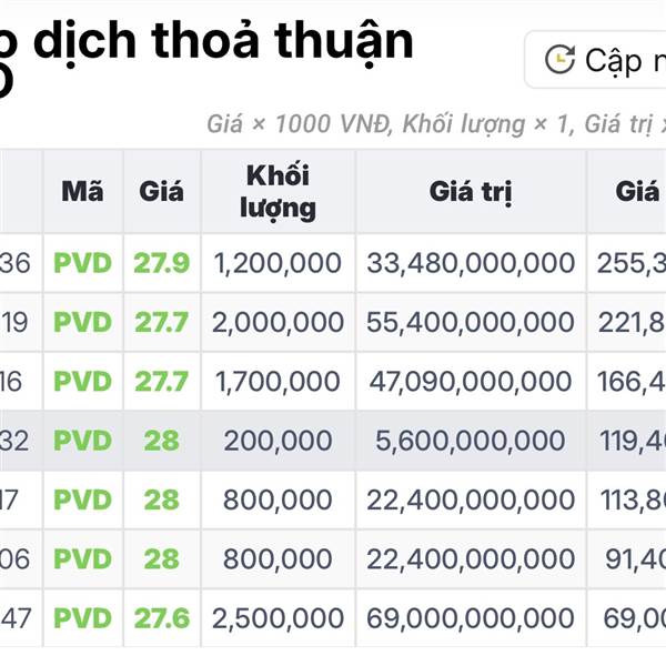 Cập nhật thêm tình hình giao dịch