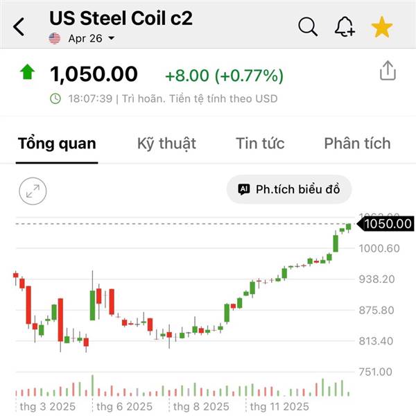 Hợp đồng thép tháng 4 đã lên tới 1037 usd rồi:)) tăng mạnh hơn cả dầu khí và phân đạm, quý 1 quý 2 này với lượng tồn kho 5k tỏi giá vốn thấp sẽ thu về lợi nhuận bao nhiêu đây 😆