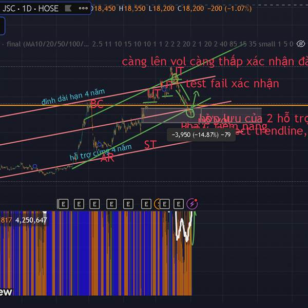 Hôm nay giá có phản ứng rút chân tại MA10, giá fail của vùng MA100 và MA200 khá dễ dàng, khẳng định lực cầu còn khá mạnh, nhưng vẫn chưa fail cây 19/1. Và vẫn có cầu đỡ. Target 31