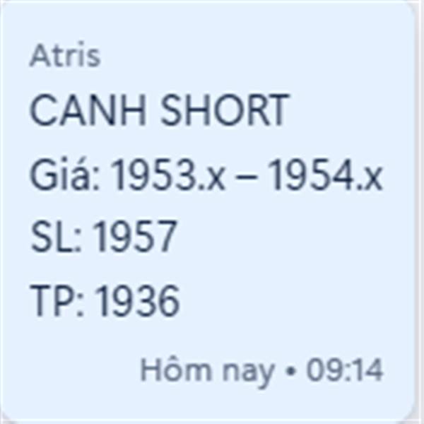 Nay Short cây nến cuối phiên đã thiệt, tiếc là ko giữ dc hết lệnh tới cuối.